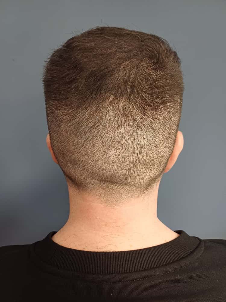 FUT procedures often leave a horizontal scar at the back of the head. This is perfectly normal, but it can become visible under shorter haircuts or even through finer hair.